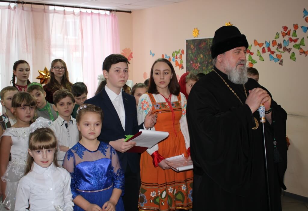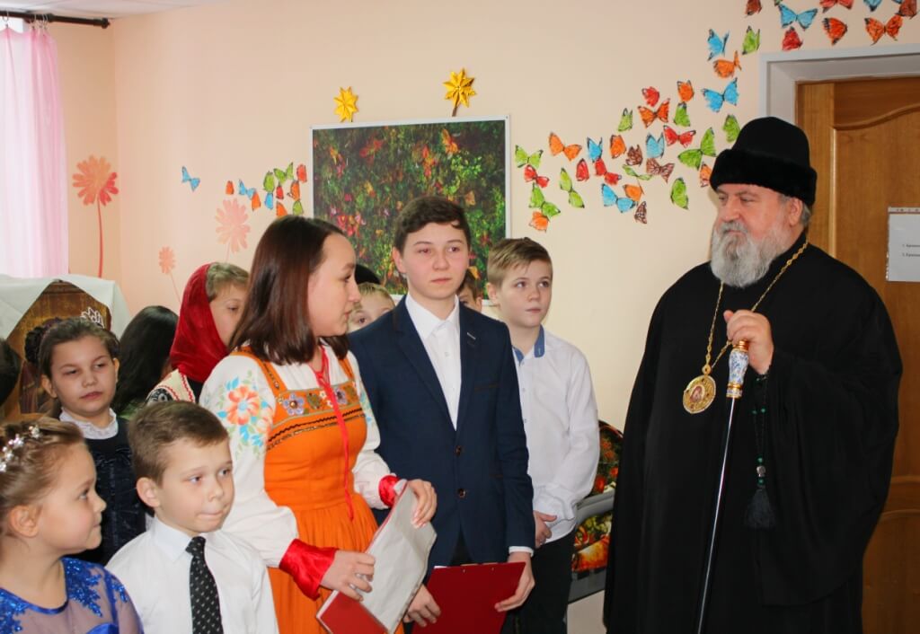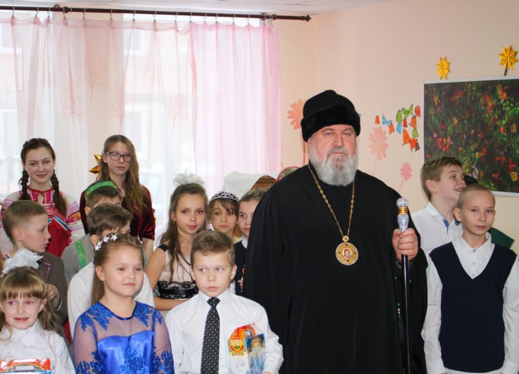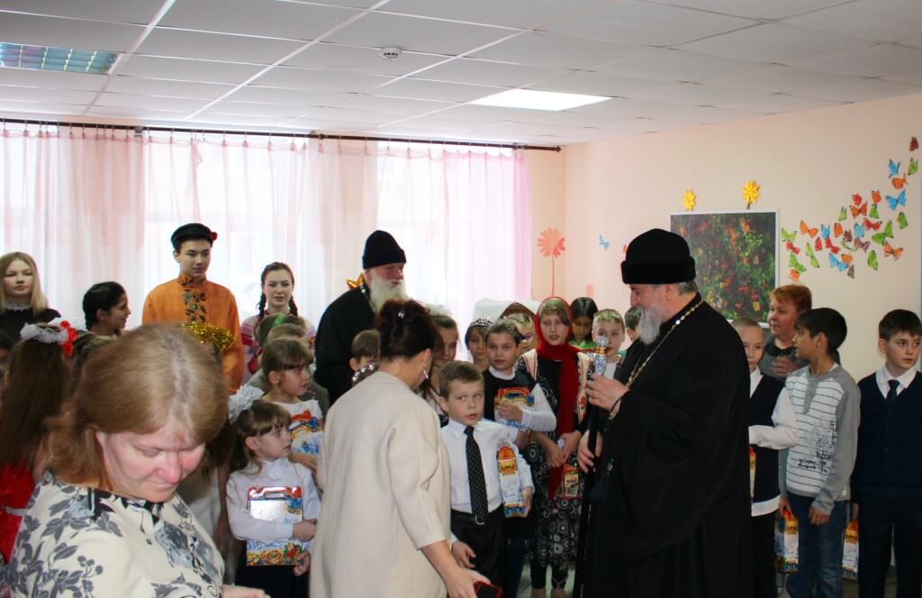 В завершении мероприятия, в благодарность за подготовленный концерт, юные участники святочного представления, получили из рук епископа Сергия сладкие Рождественские подарки.