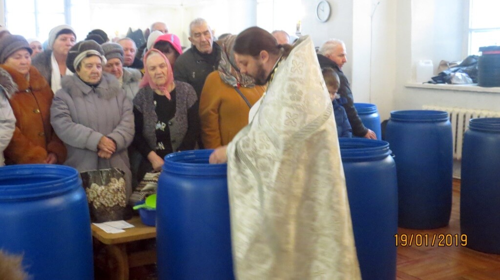 Мы дома храним эту Агиасму и по году, кто-то и более и она не истлевает. Она остается такой же свежей, пригодной для употребления. То есть везде присутствует смерть, везде тление, везде разложение, везде печать смерти, а мы пусть на короткое время, но получаем видимый знак, что это ненормально. А нормально было тогда, когда мы были бессмертны, когда мы не болели. Когда все мироздание служило человеку, сотворенному по образу и подобию. Будем дорогие братья и сестры, принимать эту воду с благоговением. Я надеюсь, что без шума мы будем проходить к этим сосудам, будем эту воду принимать, окропляться, пить , освящать наши дома, будем освящать все, чем мы пользуемся. Еще сегодня и завтра мы можем принимать эту воду на сытый желудок, но в течение всего года только натощак, с молитвой. Когда оскудевают наши силы физические, когда мы духовно расслабляемся, когда с нами происходит то, что в современном мире именуется стрессом, депрессией – принимайте эту Крещенскую воду, призывайте Бога в помощь и эта помощь несомненно придет! Всех вас поздравляю с этим праздником, с воспоминанием Крещения Господня. Всех вас поздравляю с Крещением каждого из нас! Мы должны помнить, что мы верные чада церкви, что у нас есть мать и наставница Святая православная Церковь, которая более 1000 лет ведет наш народ. И единство Церкви, крепость Церкви богатство церкви - это сам Божий Народ – все мы, ибо церковь, повторюсь, не корпорация духовенства, это люди, объединенные верой. Это люди, для которых Таинства и Обряды составляют сердцевину жизни. Это люди, которые хранят традицию, предание, воспоминают предков и собираются жить. Мы собираемся жить, мы служим Богу, освящаем воду. Пусть эта вода поможет нам изгнать всякое зло из душ, из домов, из селений наших. Да благословит Господь землю Русскую. С праздником!»