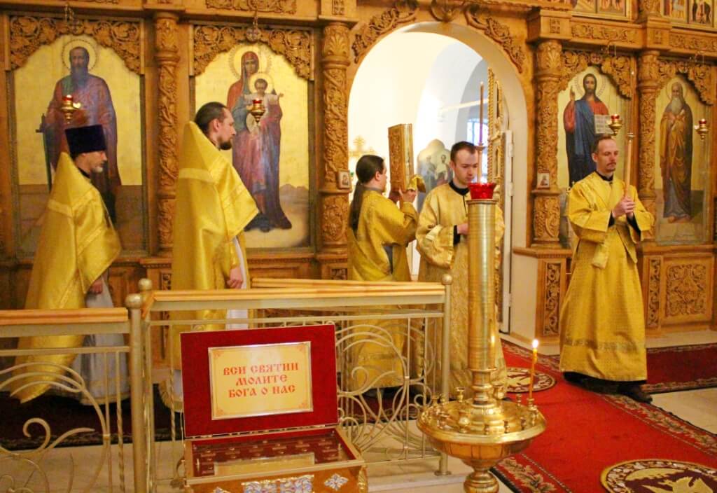 В завершении богослужения было совершено славление Собору вселенских учителей и святителей Васи́лия Великого, Григо́рия Богослова и Иоа́нна Златоустого.