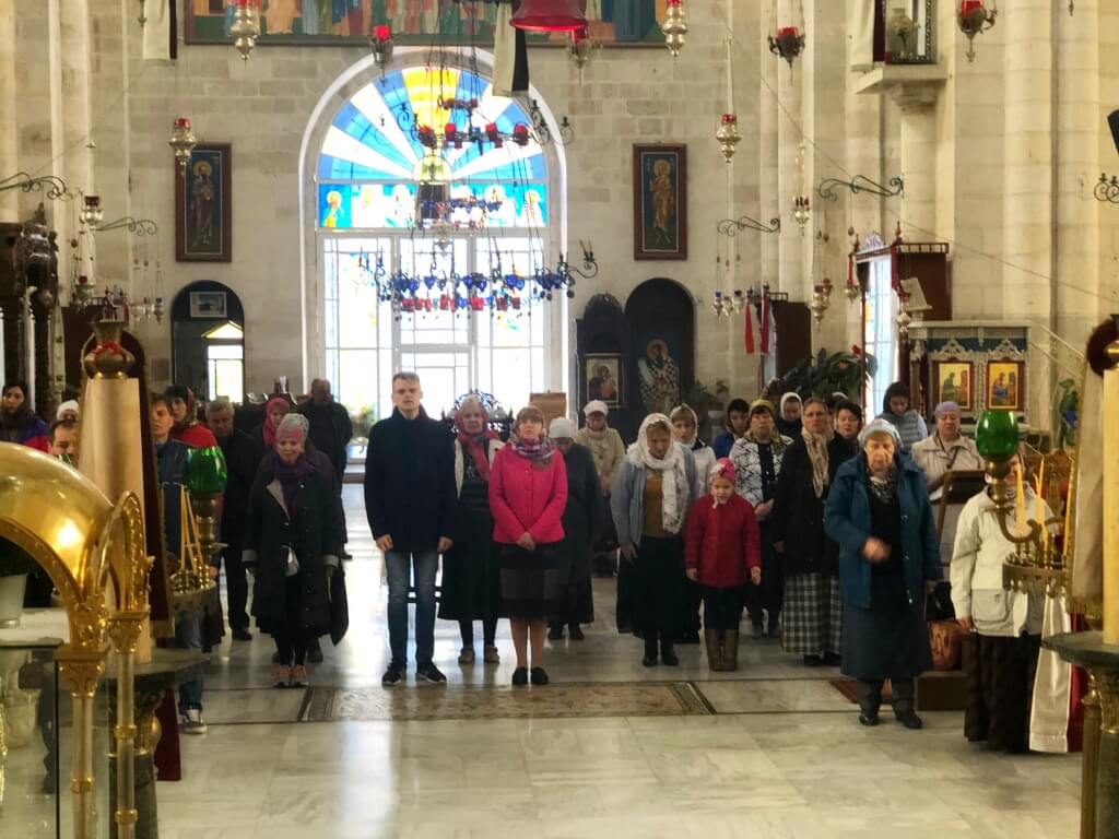 Также в воскресный день паломники молились за Божественной литургией в домовом храме Иерусалимской Патриархии святых равноапостольных Константина и Елены над Гробом Господним вместе с Блаженнейшим Патриархом Иерусалимским Феофилом и архиереями Иерусалимской Патриархии.