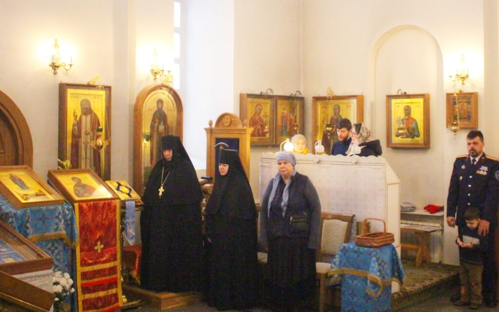Праздничная Божественная литургия была совершена в Покровском храме Спасо-Богородицкого Одигитриевского женского монастыря по случаю 1700 летия со дня мученической кончины Великомученика Феодора Стратилата.