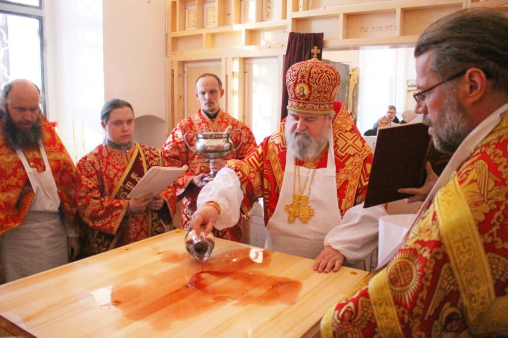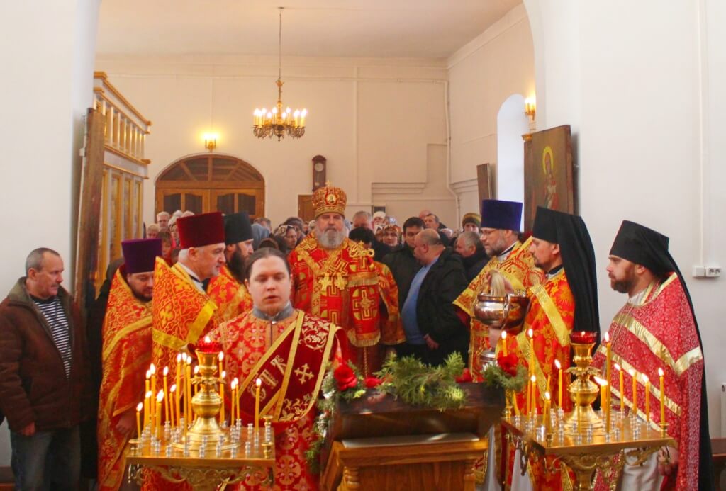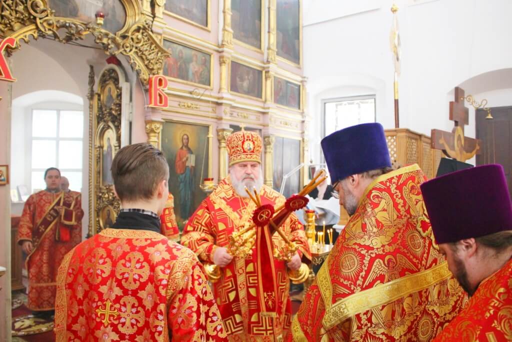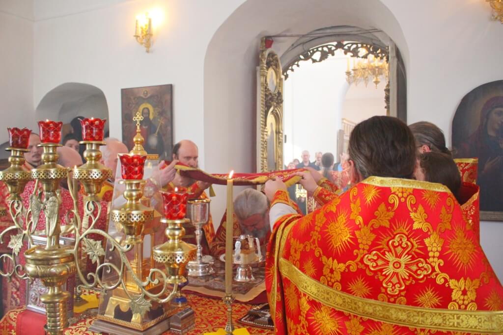 После великого освящения престола, Преосвященный епископ Сергий совершил Божественную литургию Свт. Иоанна Златоустого.
