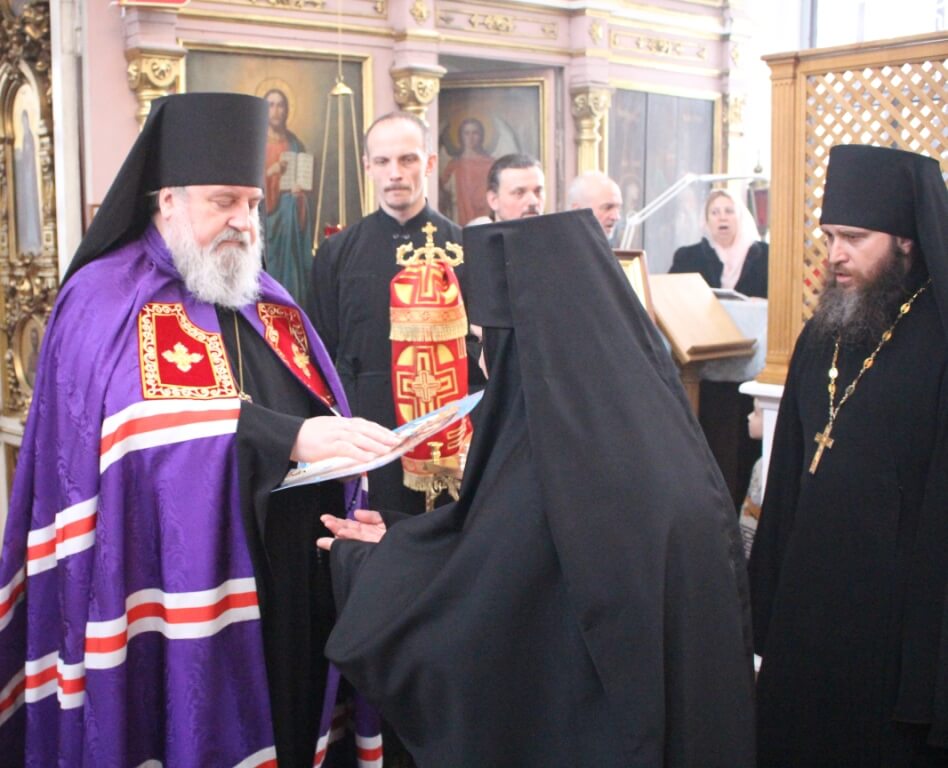 По завершении богослужения владыка Сергий обратился к молящимся с архипастырским словом и поздравил настоятеля, духовенство и всех присутствующих в храме с великим освящением престола, а также наградил Архиерейской грамотой всех, кто принимает активное участие в жизни прихода.