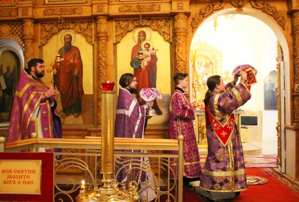 После сугубой ектении владыка вознес молитву о мире на Украине.