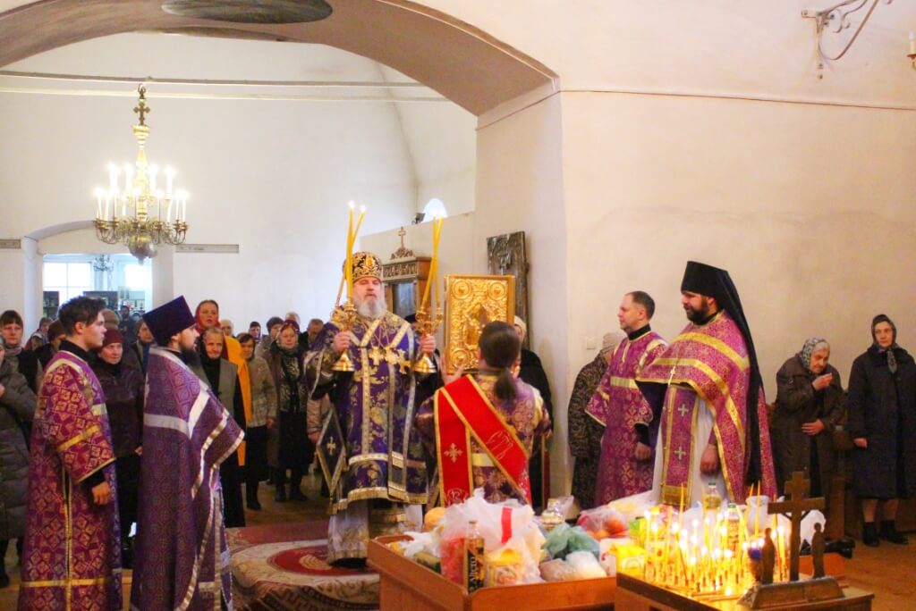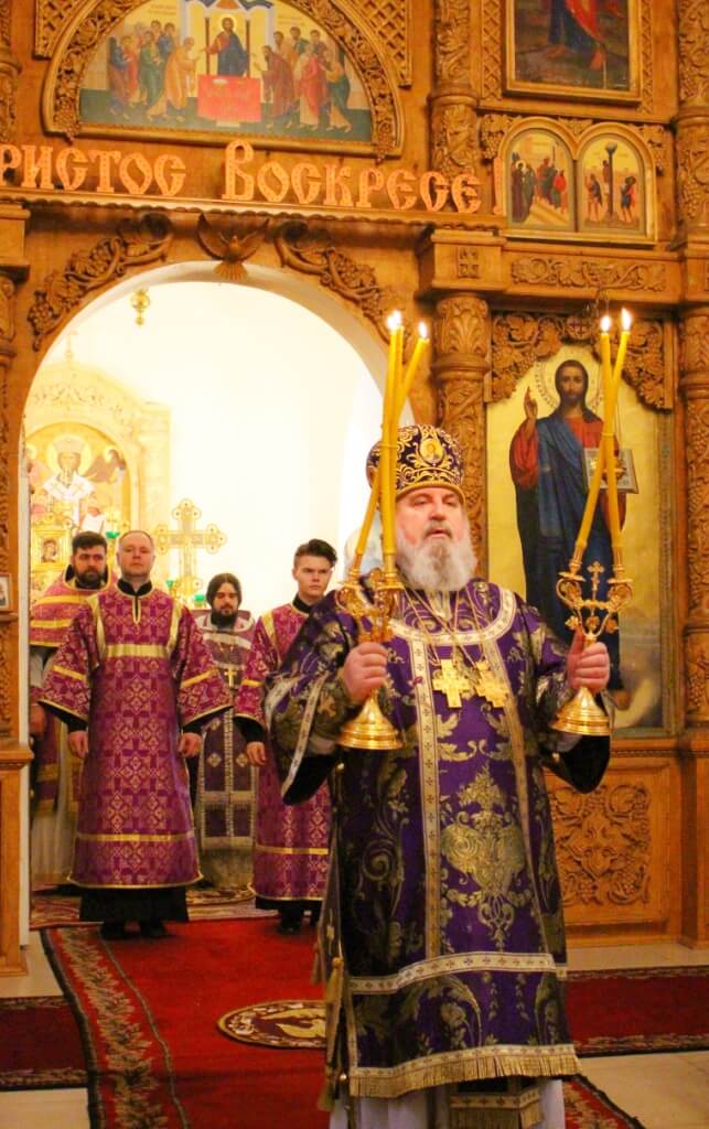 Его Преосвященству сослужили: настоятель Свято-Троицкого кафедрального собора иерей Александр Курмелёв с соборным духовенством.