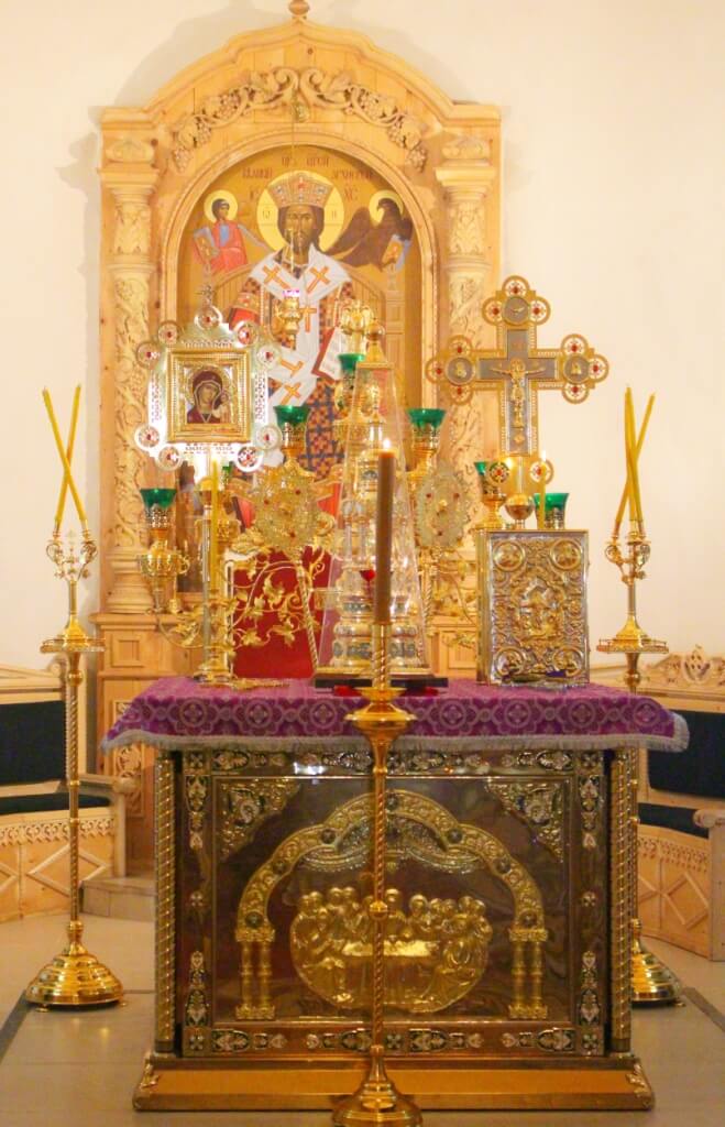 Полиелей совершался в алтаре, перед престолом, на котором находился Честной Крест. По Великом славословии Крест был торжественно изнесен на середину храма для поклонения, а затем Преосвященный Владыка совершал помазание освященным елеем верных, подходящих для поклонения Кресту.