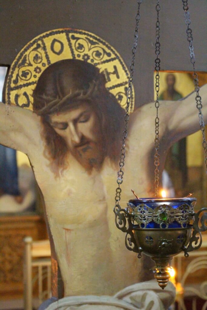 В конце службы все верующие с благоговением подходят поклониться перед Распятием.
