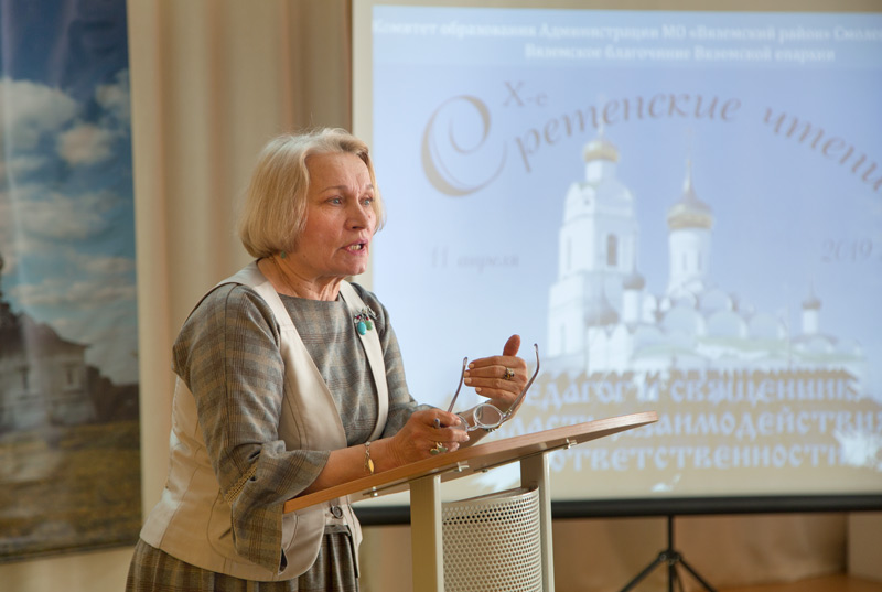 - Кузнецова Валентина Николаевна, руководитель МО педагогов ОУ Вяземского района предмета «Основы православной культуры». «Учительство и священство как фактор соработничества в духовно-нравственном просвещении детей».