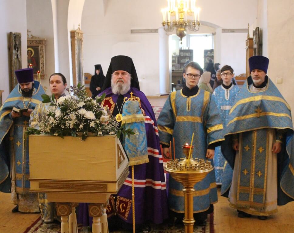 13 апреля 2019 года, в субботу 5-й седмицы Великого поста, праздник Похвалы Пресвятой Богородицы (Субботу Акафиста), Преосвященный Сергий, епископ Вяземский и Гагаринский совершил Божественную литургию святителя Иоанна Златоуста в Свято-Троицком кафедральном соборе г. Вязьмы.