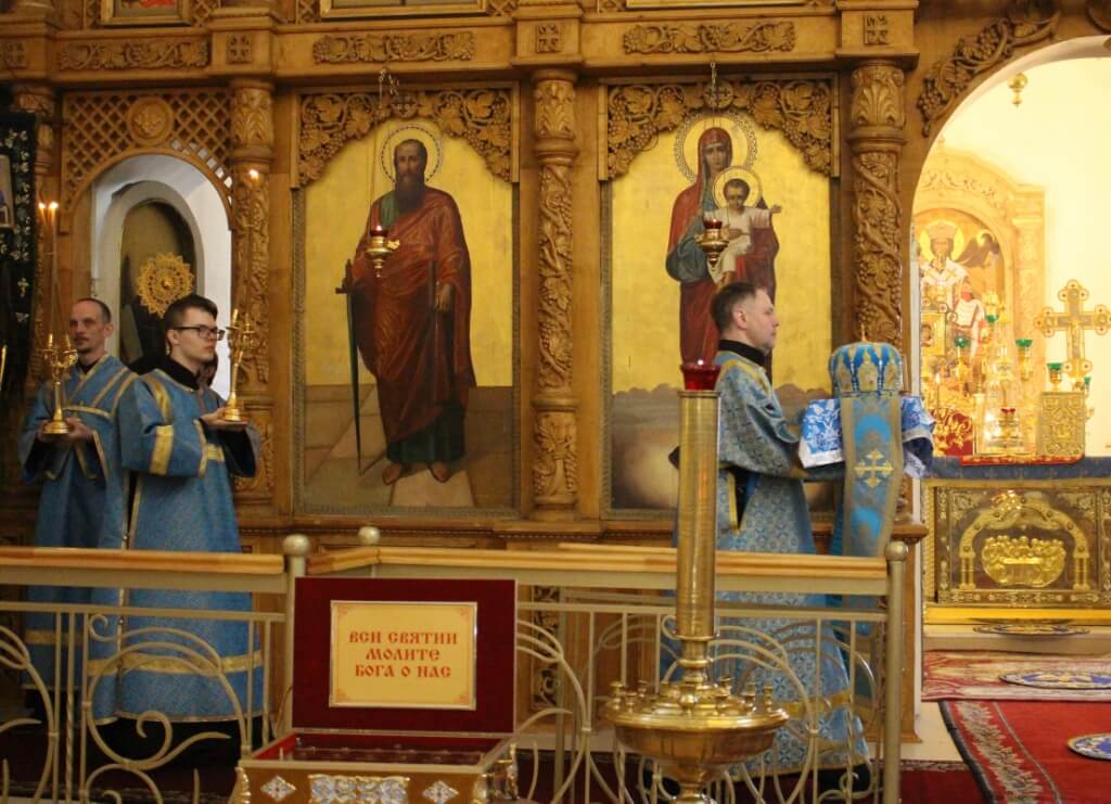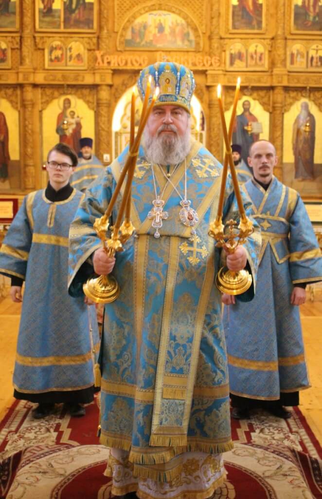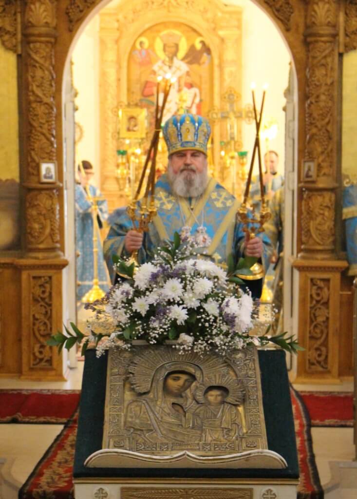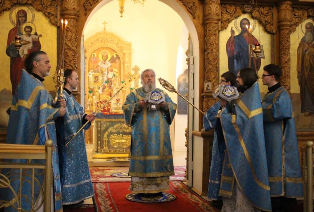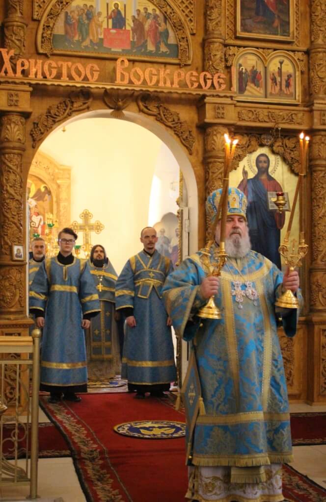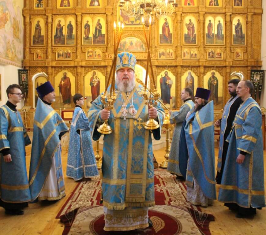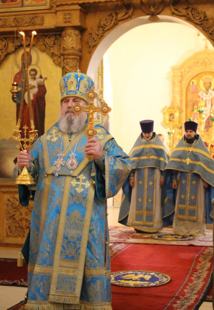 По завершении богослужения правящий Архиерей обратился к прихожанам с Архипастырским словом, поздравил духовенство и всех присутствующих с праздником Похвалы Пресвятой Богородицы, и призвал на всех Божие благословение.