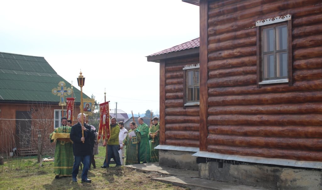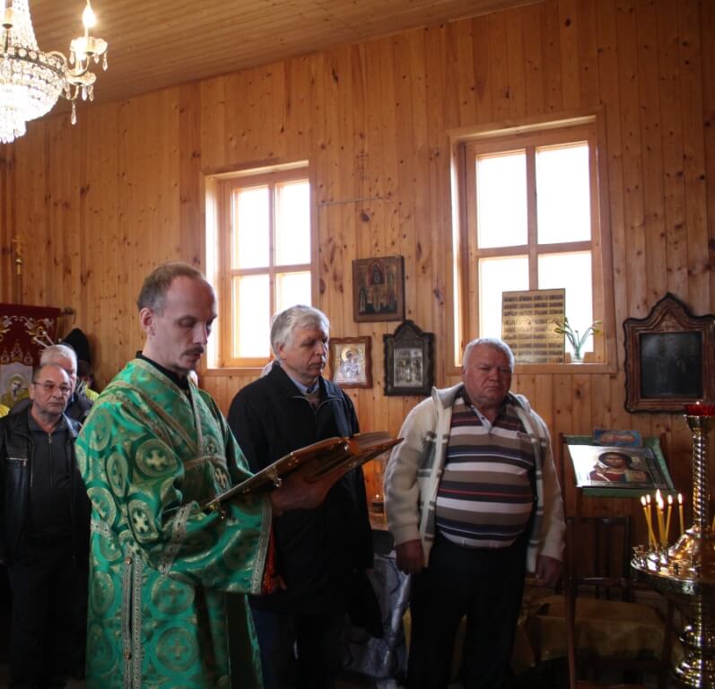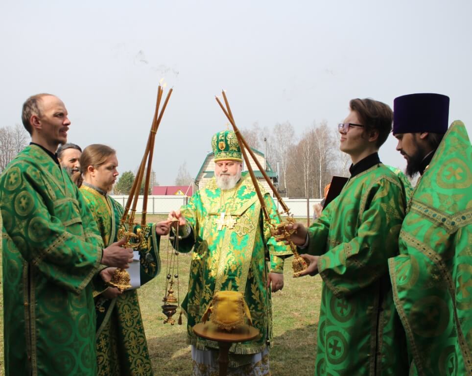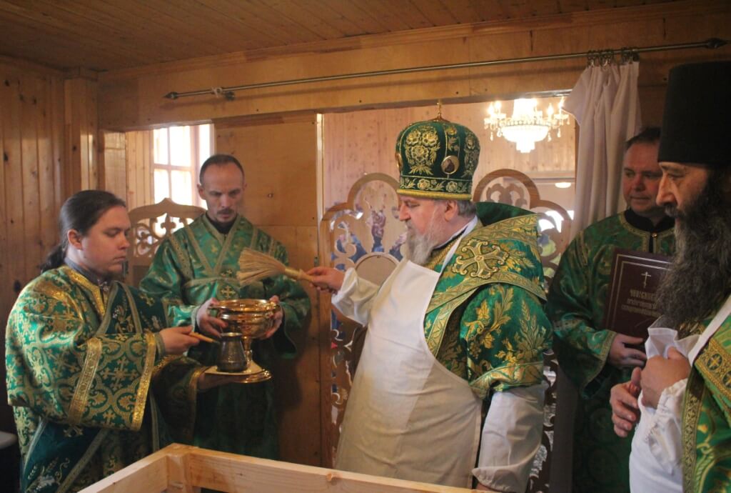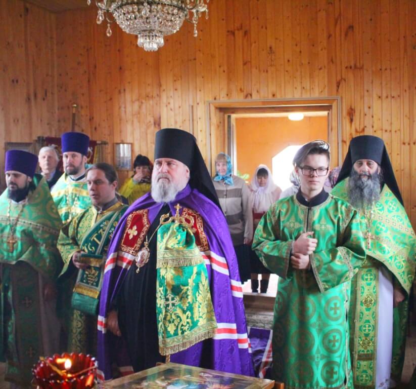 20 апреля 2019 года, Преосвященный Сергий, епископ Вяземский и Гагаринский, совершил великое освящение храма в честь сошествия Святого Духа д. Дрожжино Угранского благочиния.