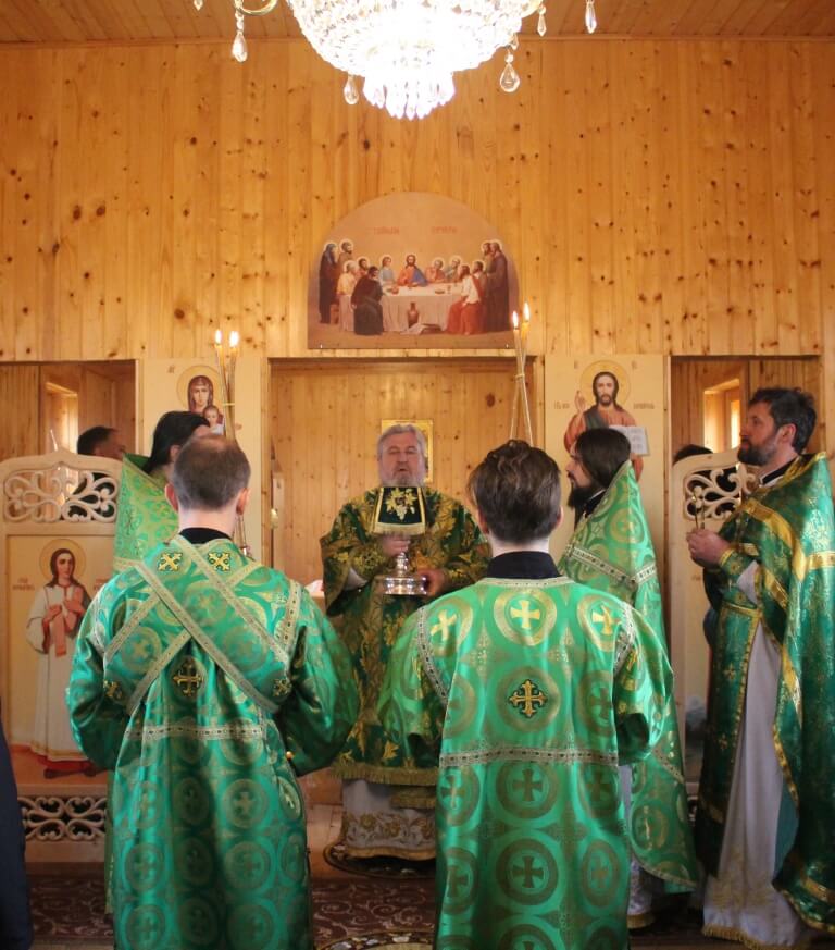 После великого освящения храма Преосвященный епископ Сергий совершил Божественную литургию свт. Иоанна Златоустого.