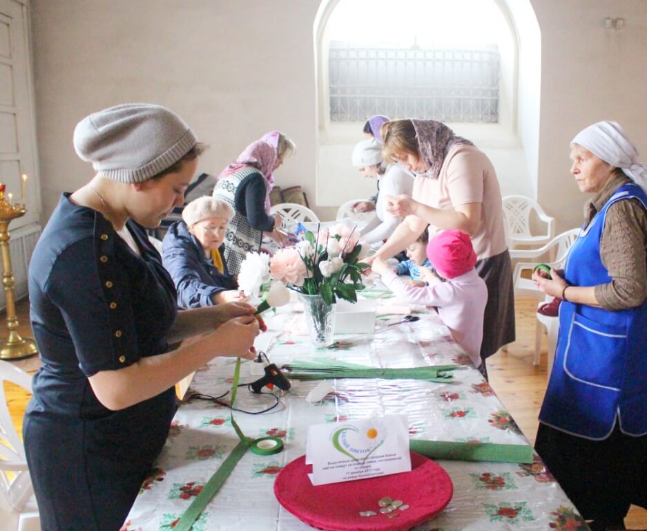 Во время проведения благотворительной акции каждый желающий мог своими руками изготовить цветок.