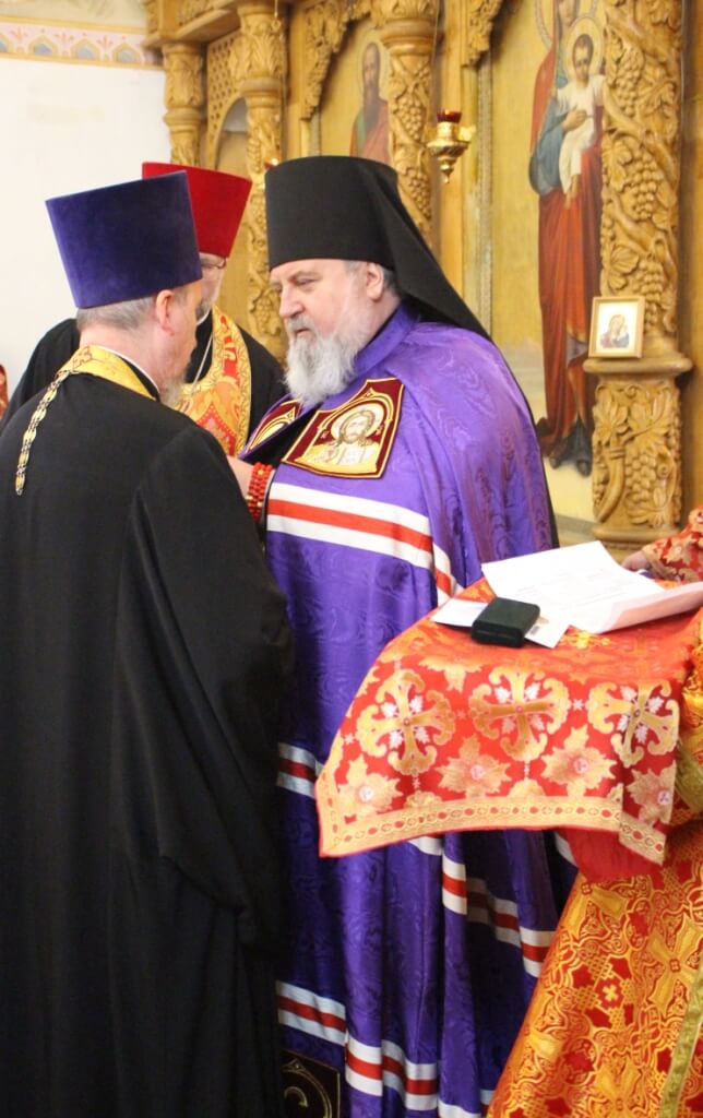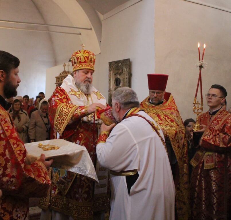 На малом Входе Правящий Архиерей наградил Патриаршей наградой-правом ношения палицы: