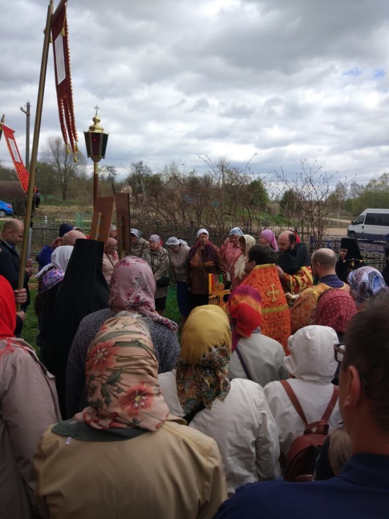По окончании Литургии отец Амвросий, все присутствующие миряне и священнослужители совершили пасхальный Крестный ход с чином водоосвящения.