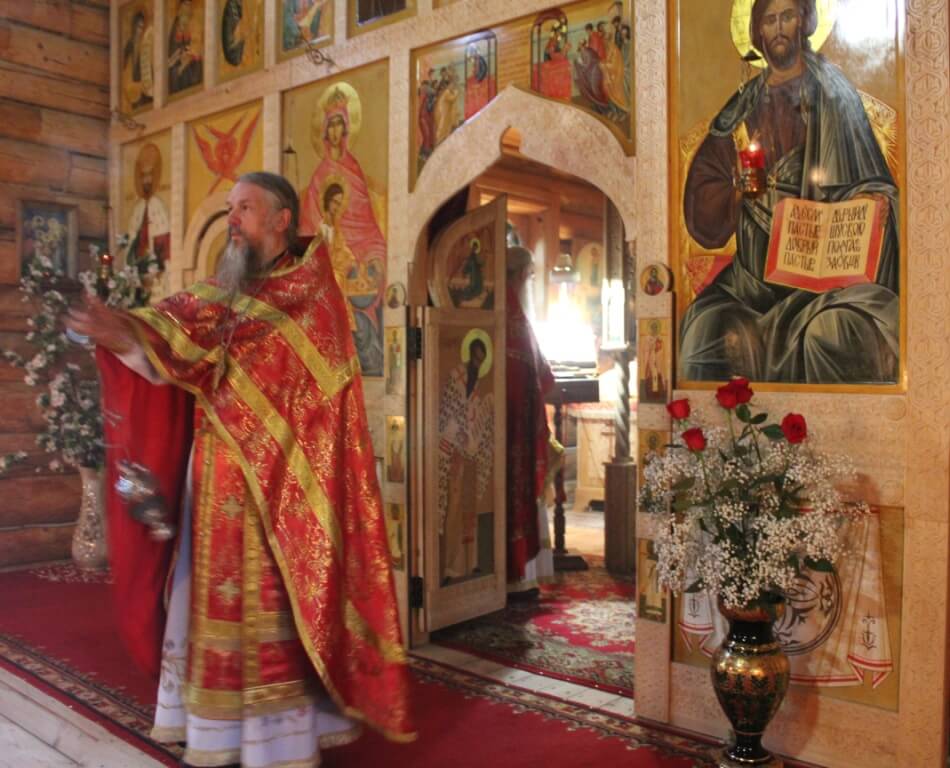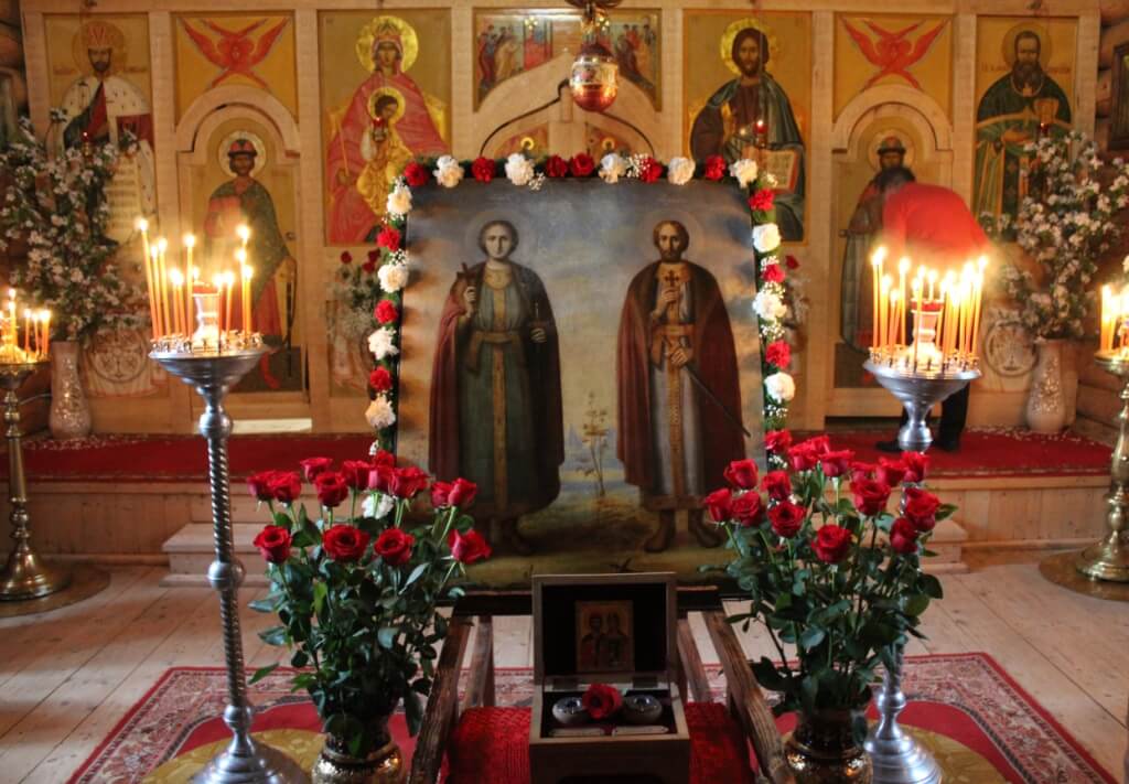 Возглавил службу Благочинный Сычёвского округа митрофорный протоиерей Анатолий Чайкин, ему сослужили настоятель храма Бориса и Глеба игумен Авраамий Жуков, настоятель Спасо-Преображенского храма в селе Никольская слобода Новодугинского района протоиерей Иоанн Жданов и настоятель храма Рождества Пресвятой Богородицы города Вязьма иерей Владимир Прокопчук. Почтить память первых Святых земли Русской собрались жители со всего Сычёвского района, в этом уединенном месте, где давно живет только настоятель, храм наполнился прихожанами, многие исповедовались, Причащались Святых тела и крови Христовой.