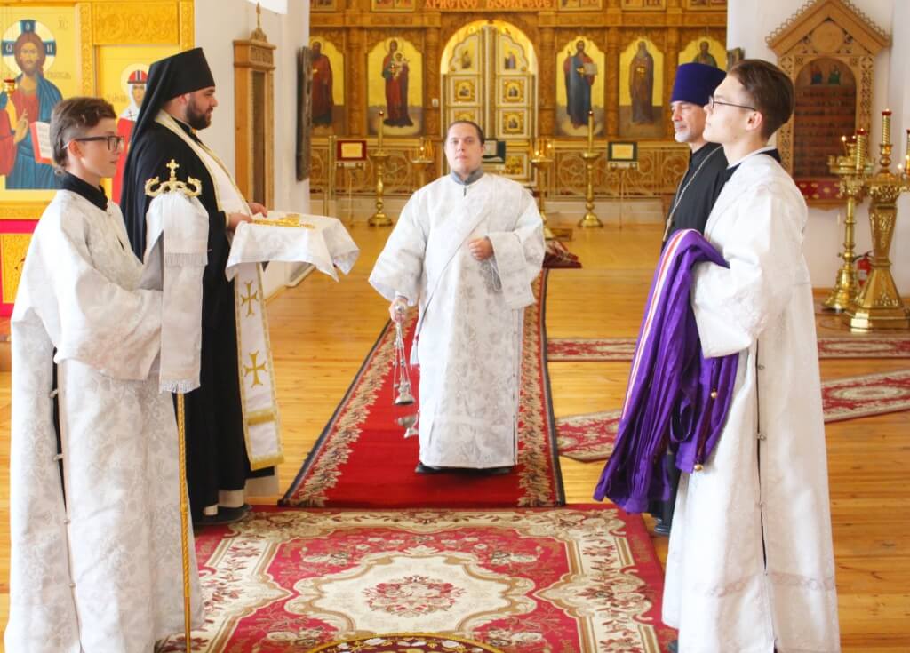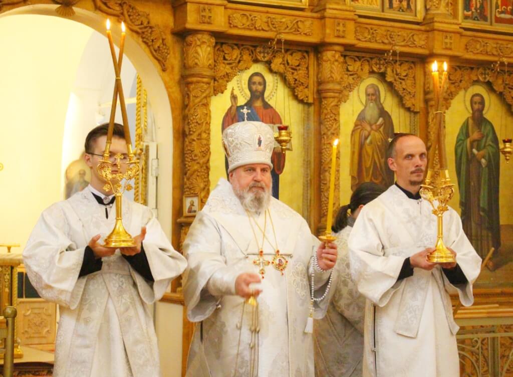 Его Преосвященству сослужили: священнослужители Свято-Троицкого кафедрального собора.