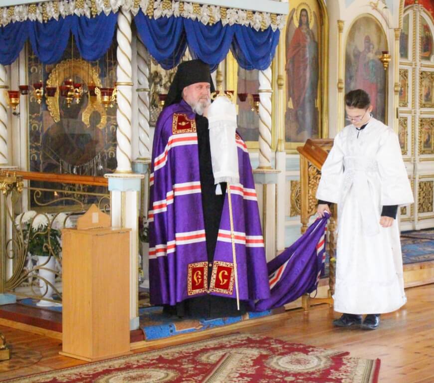 На полиелее, после прочтения Святаго Евангелия Владыка Сергий помазал всех присутствовавших на богослужении освящённым маслом.