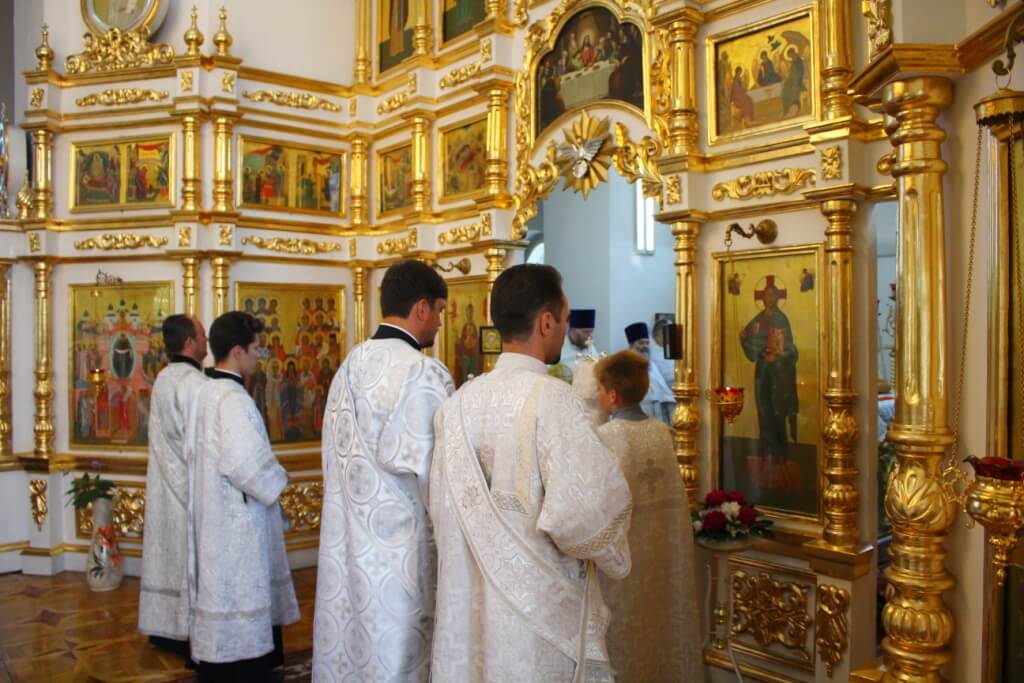 Божественную литургию в храме святых апостолов Петра и Павла совершили митрополит Смоленский и Дорогобужский Исидор, епископ Вяземский и Гагаринский Сергий, епископ Рославльский и Десногорский Мелетий.