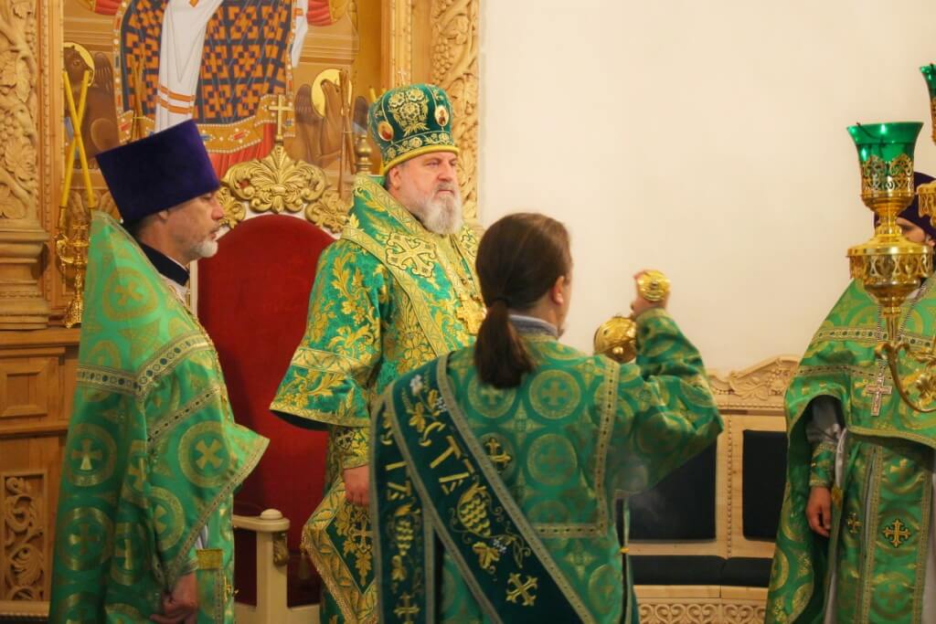 Его Преосвященству сослужили настоятель Свято-Троицкого кафедрального собора иерей Александр Курмелев и соборное духовенство.