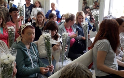 В заключение мероприятия каждый получил из рук священника живые цветы, духовную литературу и иконы Пресвятой Богородицы "Воспитание".