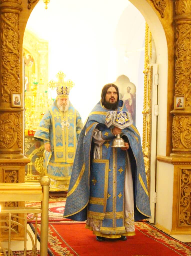 Его Преосвященству сослужили настоятель Свято-Троицкого кафедрального собора иерей Александр Курмелев и клирик Свято-Троицкого кафедрального собора иерей Владимир Покатов.