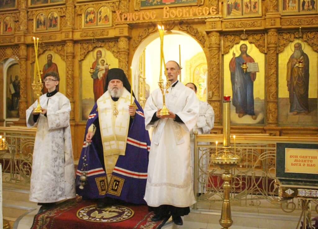 Его Преосвященству сослужил настоятель Свято-Троицкого кафедрального собора иерей Александр Курмелёв.