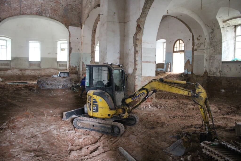 Продолжение работ включает в себя - выемка грунта (более 1000 куб. м.), внутренние работы: штукатурка. покраска и т.д. столярные работы, укладка гранитного пола.