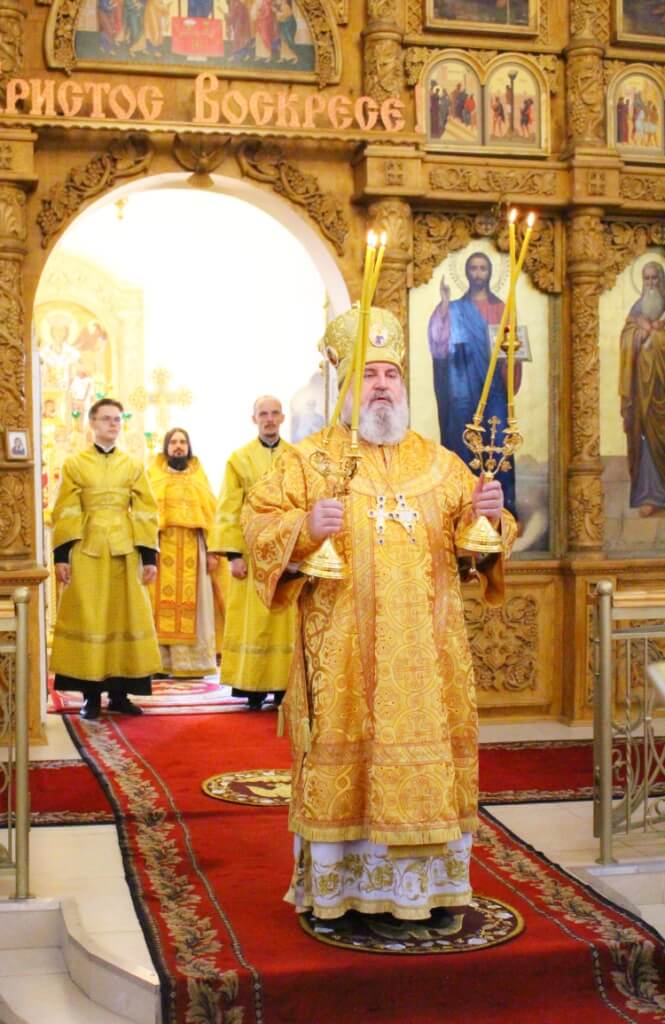 Его Преосвященству сослужили настоятель Свято-Троицкого кафедрального собора иерей Александр Курмелев и клирик Свято-Троицкого кафедрального собора иерей Владимир Покатов.