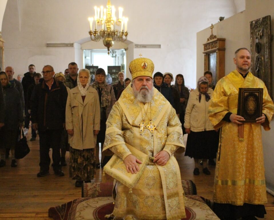 Его Преосвященству сослужили клирик Введенского храма г. Вязьмы протоиерей Георгий Биляк и клирик Свято-Троицкого кафедрального собора иерей Владимир Покатов.