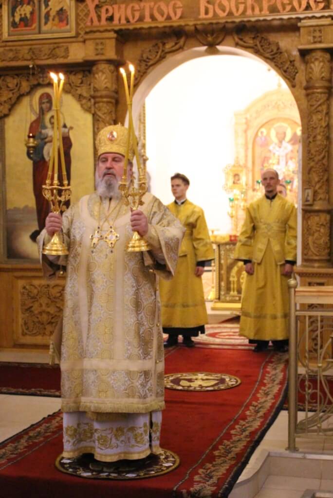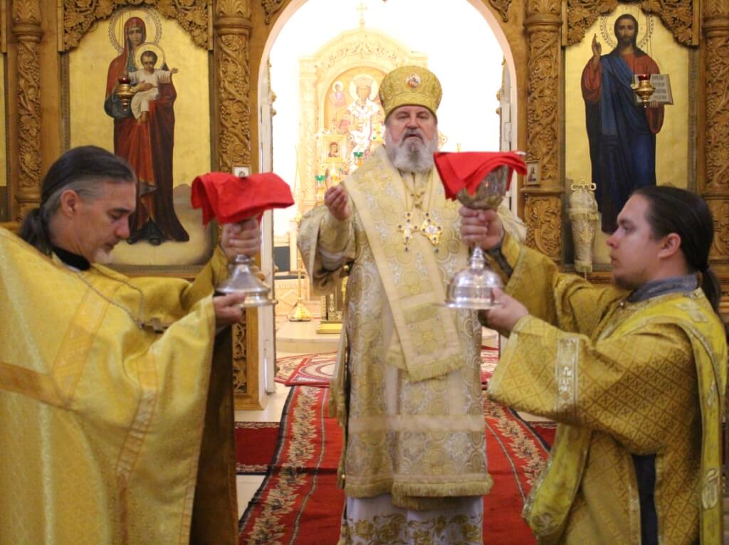 По завершении богослужения Епископ Сергий обратился к присутствующим с Архипастырским словом, поздравил духовенство и мирян с воскресным днём и призвал на всех Божие благословение.