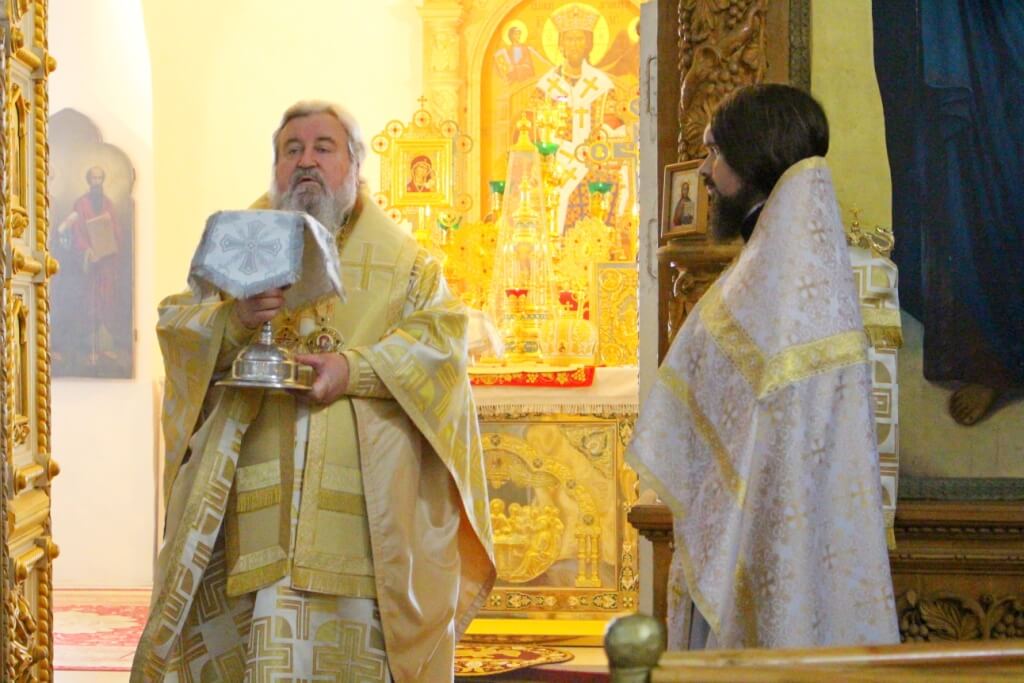 Его Преосвященству сослужили настоятель Свято-Троицкого кафедрального собора иерей Александр Курмелёв и клирик собора иерей Владимир Покатов.