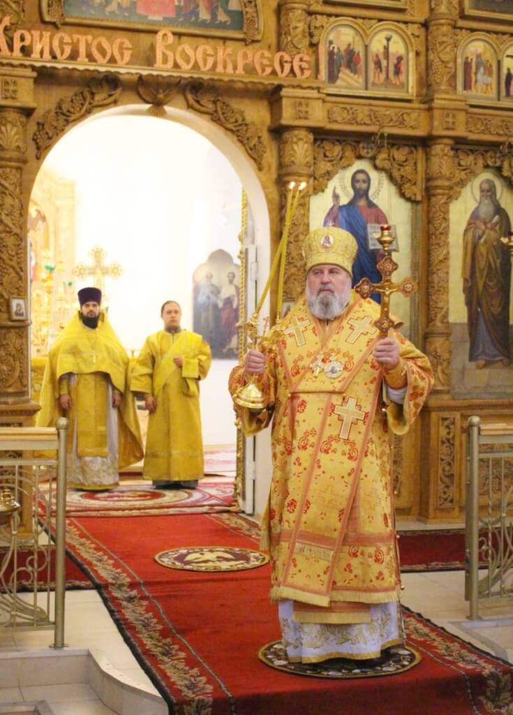 По завершении богослужения, Преосвященный епископ Сергий, обратился к молящимся с архипастырским словом, поздравив всех присутствующих на литургии с воскресным днём, и днём попразднства Рождества Пресвятой Богородицы.