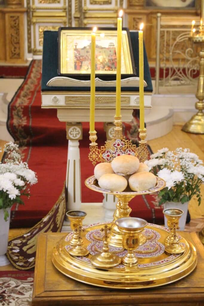 На вечерне был совершен чин литии с освящением хлебов.