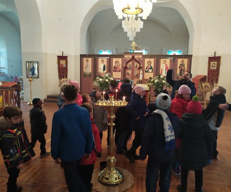 В храме «Всех Скорбящих Радости» ребят и учителей встретили иерей Роман (Ступа) и помощник игумена Александра Е.Цымбал.