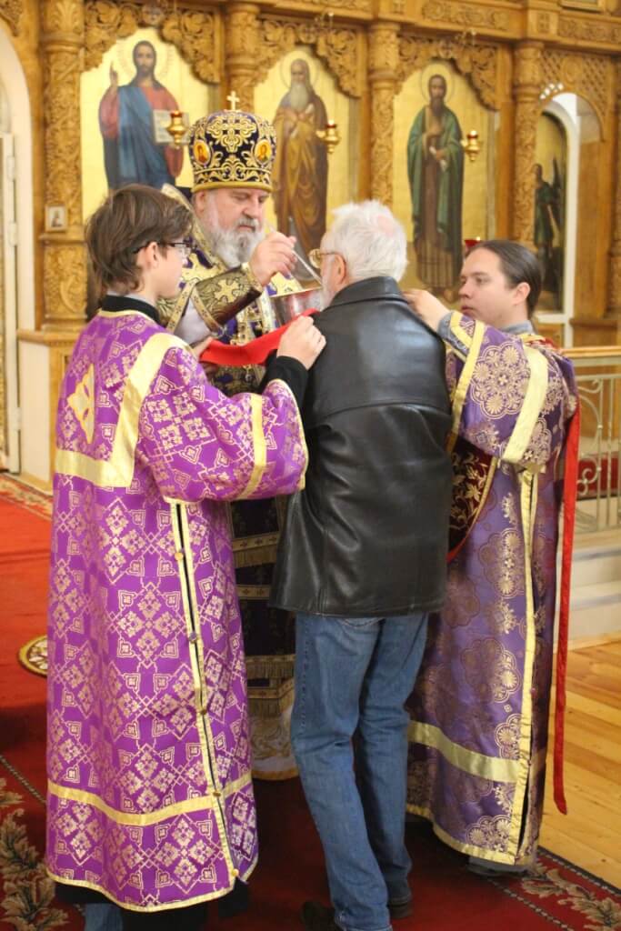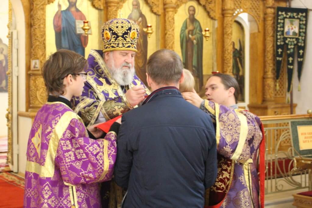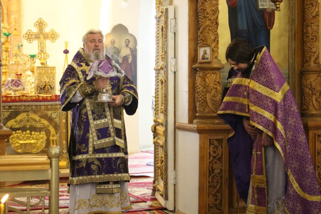 В завершении Божественной литургии было совершено славление и поклонение перед Крестом Господним.