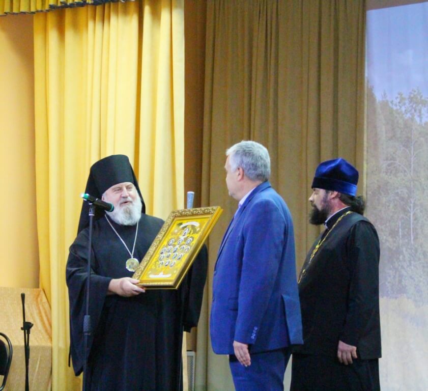 В своём приветственном слове Епископ Сергий поздравил с 90-й годовщиной образования Тёмкинского района Главу Тёмкинскогго района Сергея Анатольевича Гуляева, а также всех тех людей которые здесь родились и выросли. Кто связал свою судьбу с районом, живет его настоящим и будущим, стремится сделать его лучше.