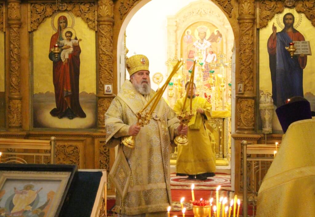 По завершении богослужения, Преосвященный епископ Сергий, обратился к молящимся с архипастырским словом, поздравив всех присутствующих на литургии с воскресным днём, и днём памяти Честно́го, славного Пророка, Предтечи и Крестителя Господня Иоа́нна.