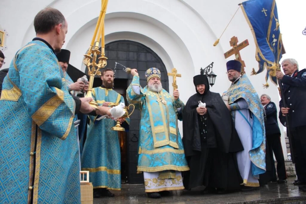 После Божественной литургии был совершён Крестный ход вокруг Покровского храма.