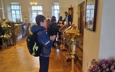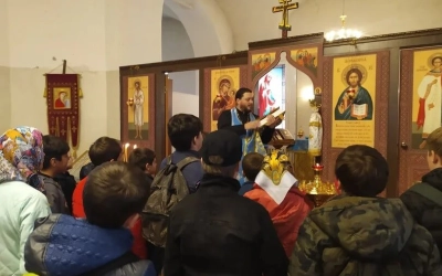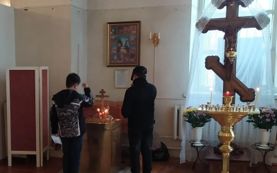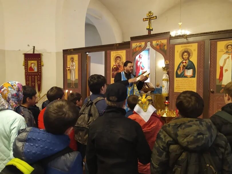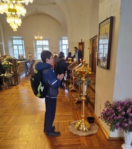 Далее ребята были приглашены в Тихвинский храм, где узнали о благоустройстве храма и помолились о свои родных.