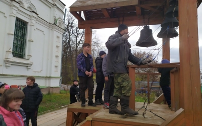 После ознакомительной экскурсии звонарь Андрей показал воспитанникам школы-интерната мастер-класс по колокольному звону.