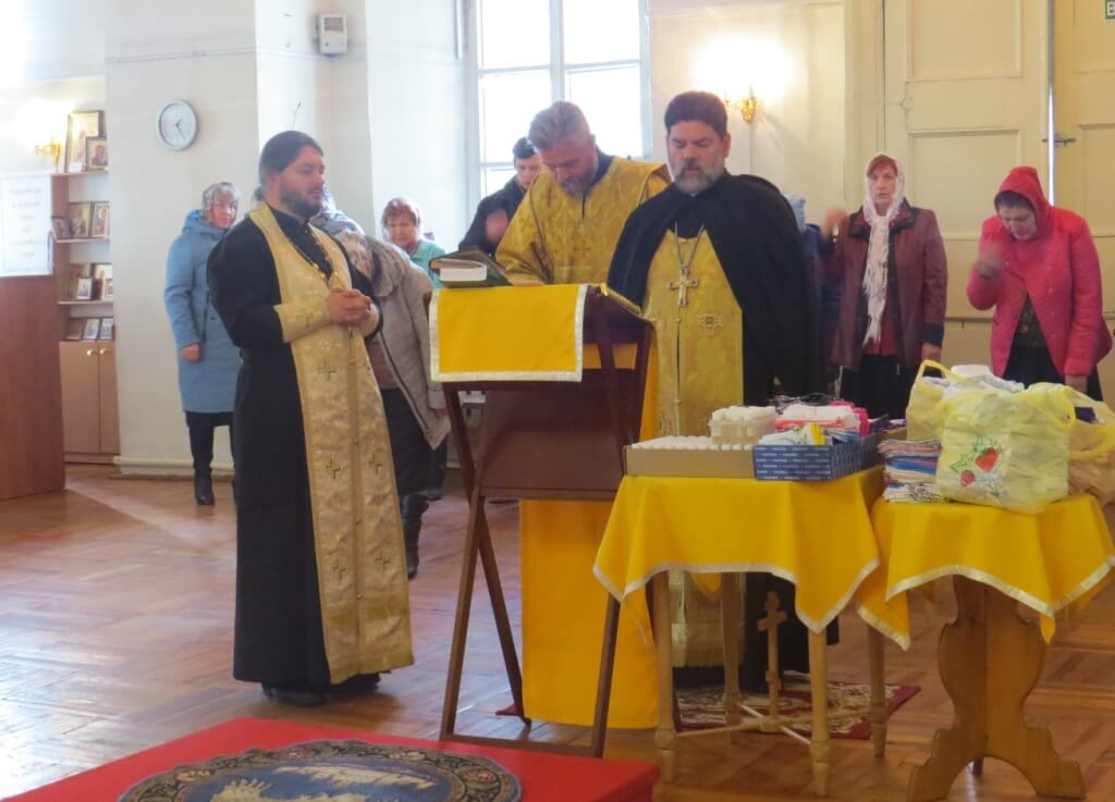 Далее игумен Александр, иерей Роман и Диакон Димитрий Прусов отслужили молебен.