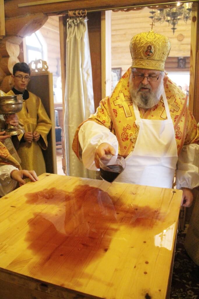 В завершении чина великого освящения храма Архипастырь осенил всех молящихся крестным знамением и окропил святой водой.