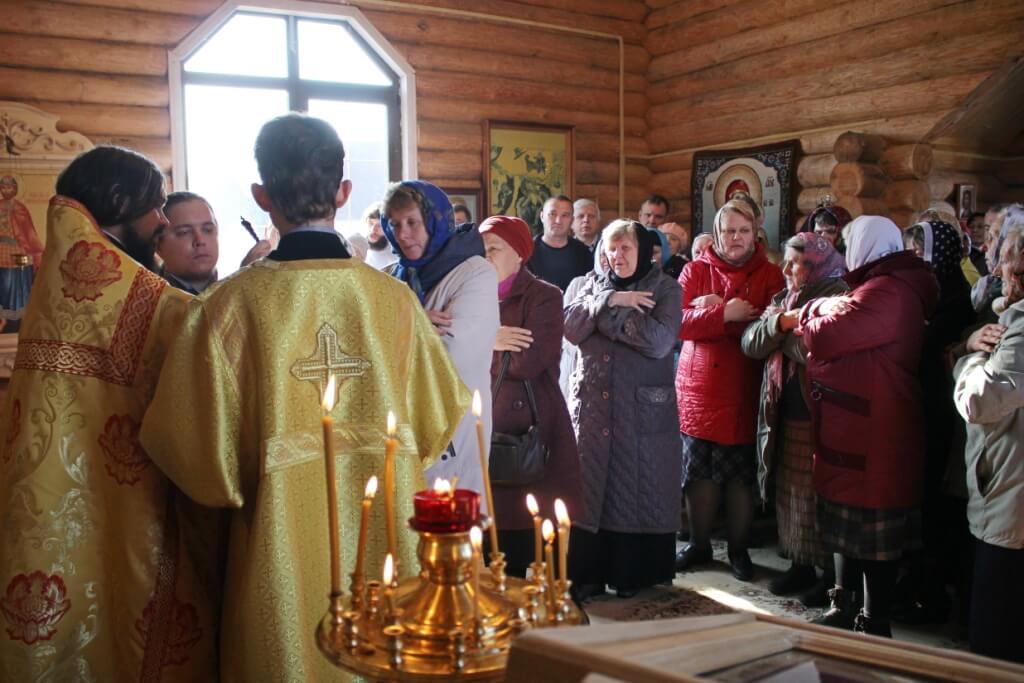 За богослужением молились: Глава муниципального образования «Угранский район» Смоленской области Наталия Сергеевна Шишигина; Председатель Угранского районного Совета депутатов Вячеслав Михайлович Кудрявцев; гости; паломники и жители д. Желанья.
