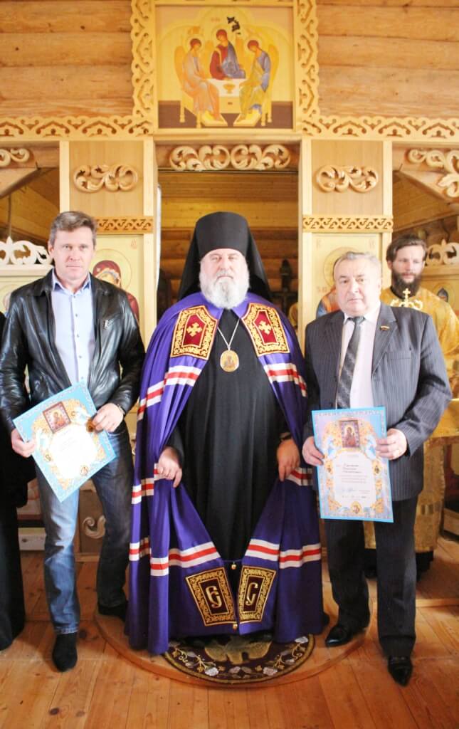 Обращаясь к духовенству и пастве, после отпуста литургии, владыка Сергий поздравил всех собравшихся с великим и знаменательным событием — освящением храма, в продолжении своего слова Епископ Сергий наградил, Архиерейской грамотой, в благословение за усердные труды на благо Вяземской епархии Русской Православной Церкви: