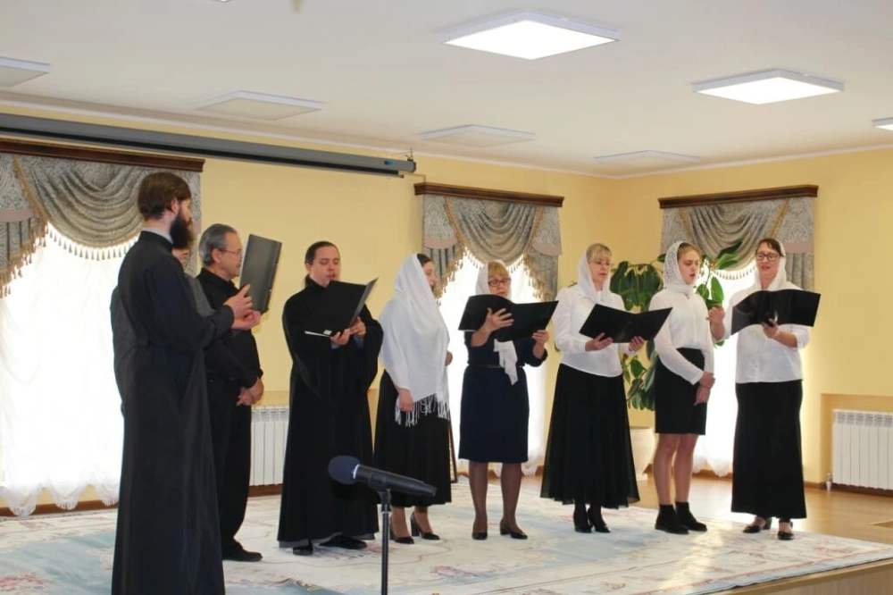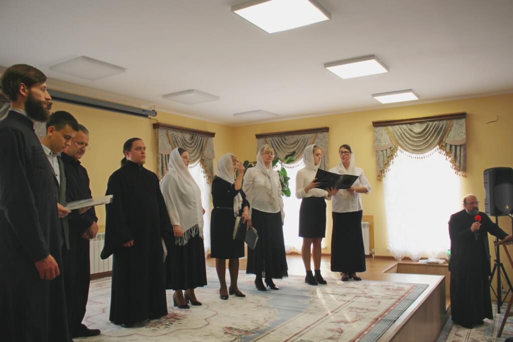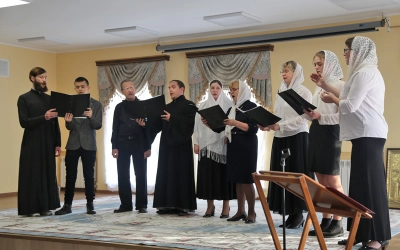 Иллюстрациями к лекторию были представлены песнопения, которые исполнил хор Свято-Троицкого кафедрального собора г. Вязьма, под руководством регента Елены Платоновой.