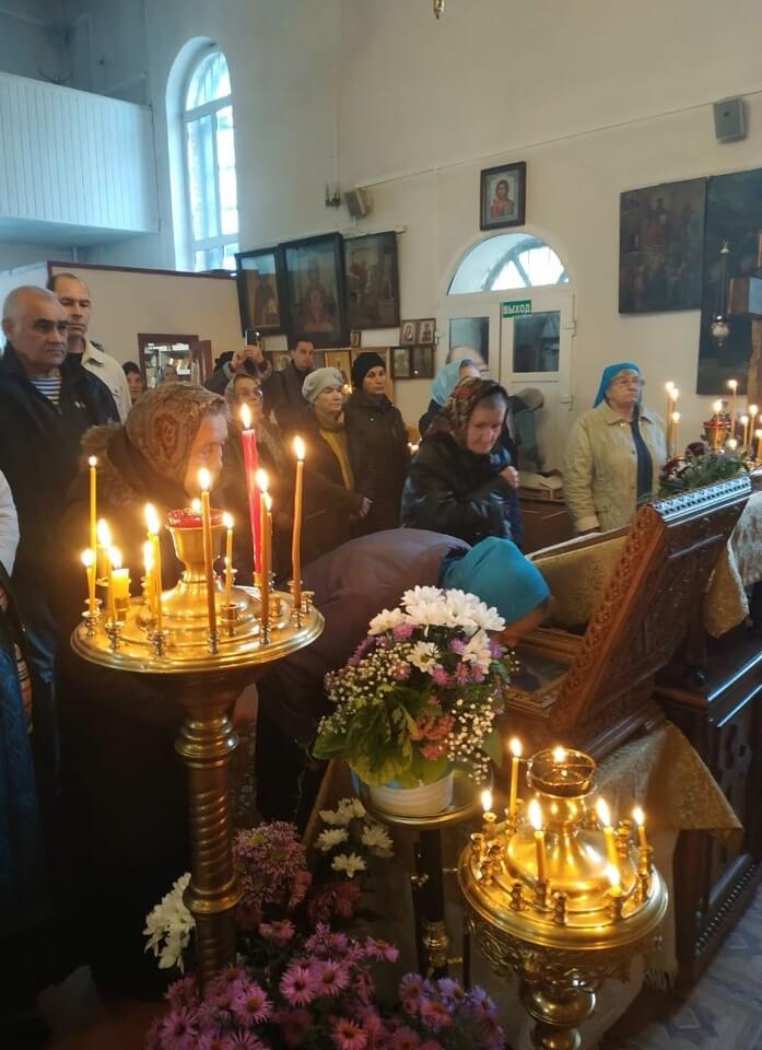 После службы отец Александр обратился к собравшимся прихожанам с приветственным словом и проповедью в которой, сказал, что хоть ковчег со Святынями и покидает Свято-Благовещенский храм, но Святые никогда не покинут Сычёвскую землю, Они всегда будут с нами, защищать и оберегать Православный народ.