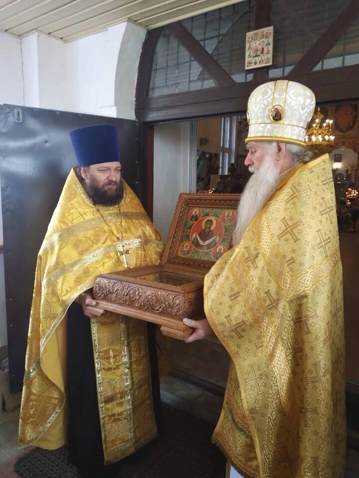 Отец Александр приехал в Сычёвку с почетной целью перенять ковчег с Православными Святынями, который находился в храме с 14 по 17 октября , теперь и прихожане Гагаринского благочиния смогут поклониться частице Ризы Пресвятой Богородицы, частицам святых мощей: сщмч. Дионисия Ареопагита, прп. Макария Желтоводского, прав. воина адмирала Федора Ушакова, сщисп. Николая митр. Алма - Атинского, блж. Матроны Московской.