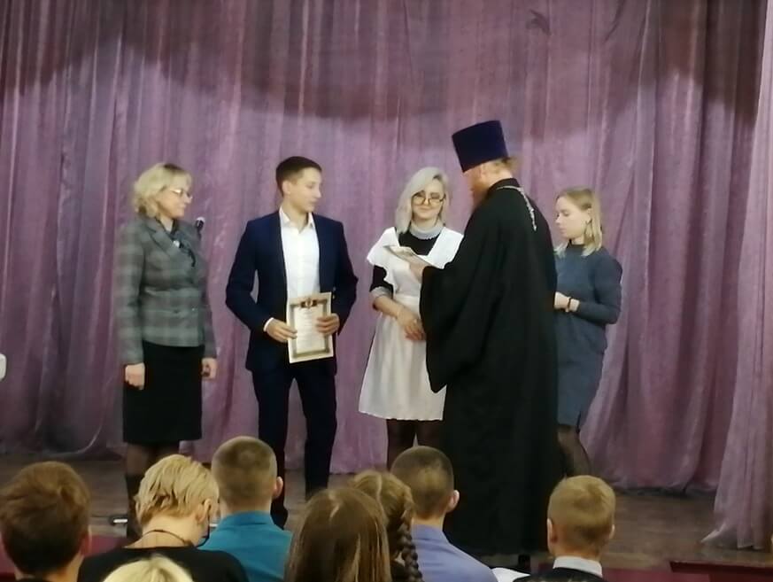 Подводя итоги общешкольных Рождественских чтений, отец благочинный поблагодарил ребят за большую проделанную работу и наградил всех участников грамотами.