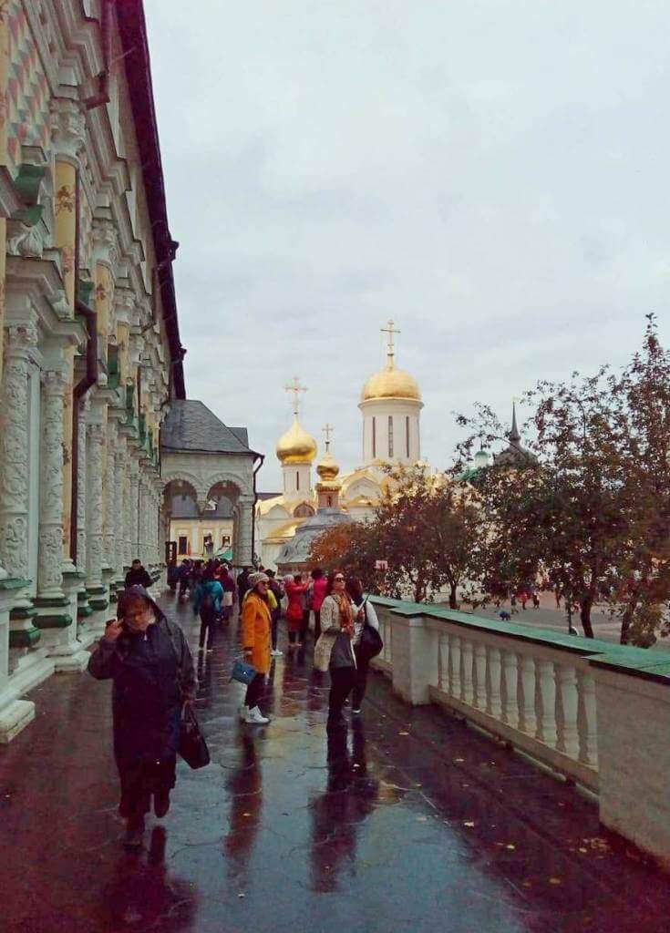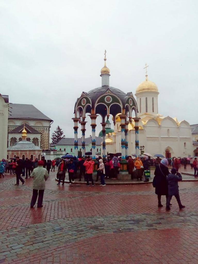 «Свято - Троице - Сергиева Лавра меня поразила своей величественностью и многолюдностью. Здесь были не только паломники со всей России, но и толпы гостей со всего мира. После молитвы в Успенском соборе, поспешили мы поклониться мощам великого святого, получить его благословение на пребывание в Лавре. Вместе с экскурсоводом обошли всю обитель, услышали рассказ о славной ее истории, приложились к деревянному гробу Сергия Радонежского, зашли в монастырскую Трапезную палату, почитаемую одним из лучших образцов московского барокко, крипту под Успенским собором, Покровский храм Московской Духовной Академии, набрали святой воды в источнике.